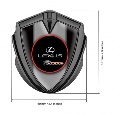Lexus Metal Domed Emblem Graphite Black Base Red Ring Chrome Logo