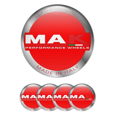/MAK Emblem for Wheel Center Caps Red Base Silver Ring Design