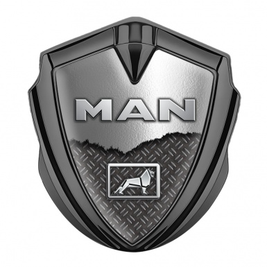 MAN Emblem Ornament Graphite Industrial Grate Torn Metal Lion Logo