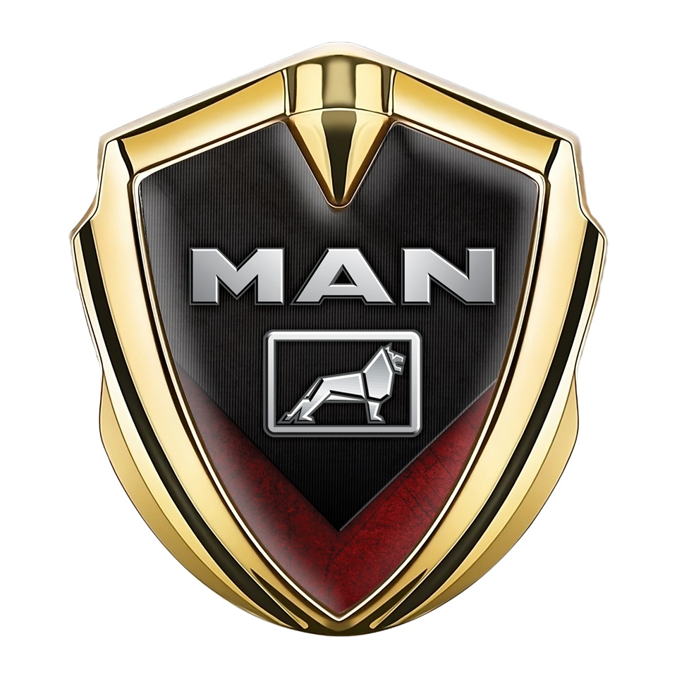 MAN Metal Domed Emblem Gold Dark Panel Red Scratched Fragment Design