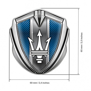 Maserati 3D Car Metal Emblem Silver Diagonal Blue Mesh Trident Logo