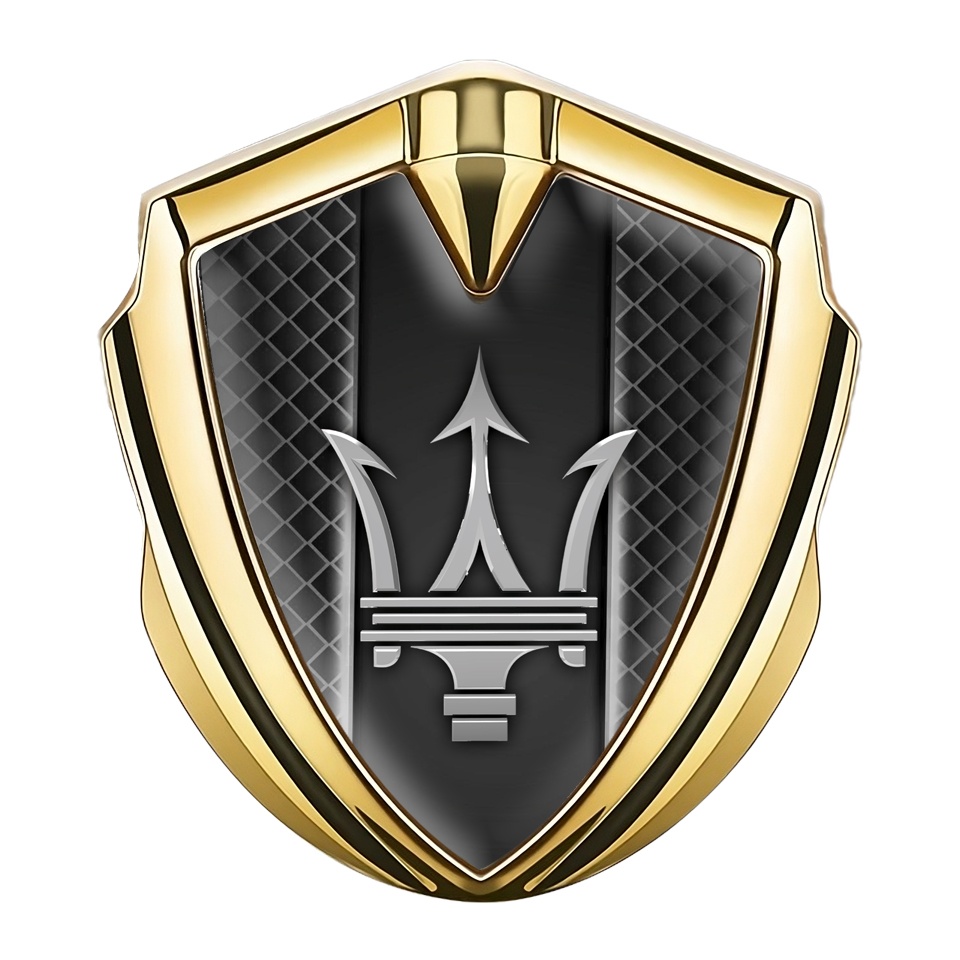 Maserati Fender Metal Emblem Badge Gold Waffle Effect Metallic Design