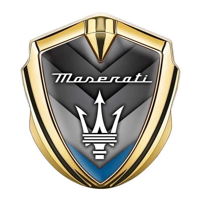 Maserati Metal Emblem Self Adhesive Gold Blue Cone Base Trident Logo