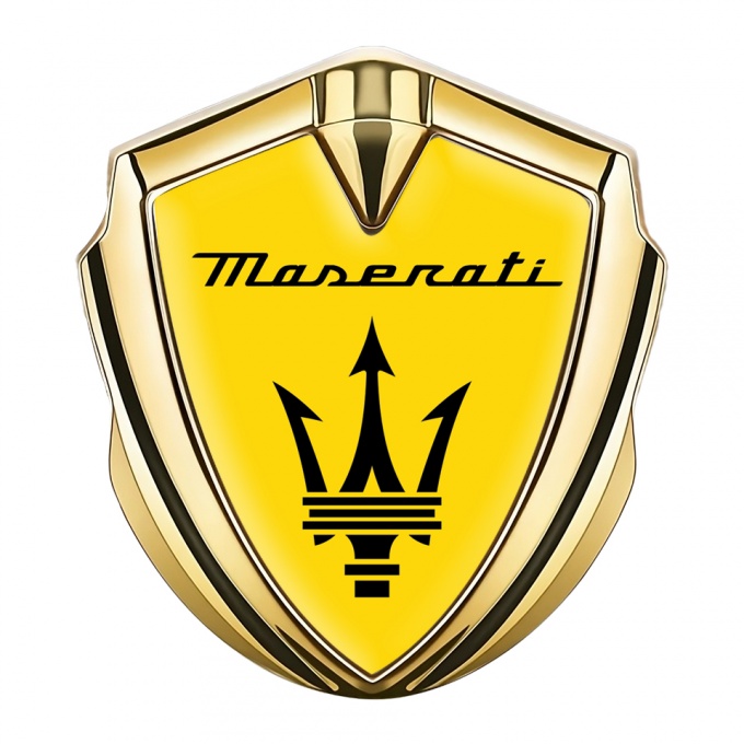 Maserati Metal Emblem Self Adhesive Gold Yellow Base Black Trident