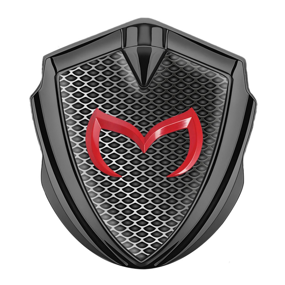 Mazda Emblem Badge Self Adhesive Graphite Metal Grate Red Logo