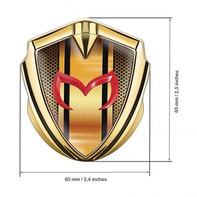 Mazda Emblem Silicon Badge Gold Orange Perforated Steel Red Logo