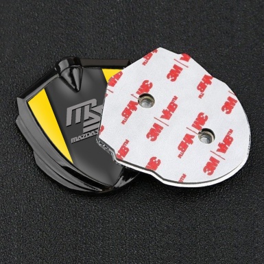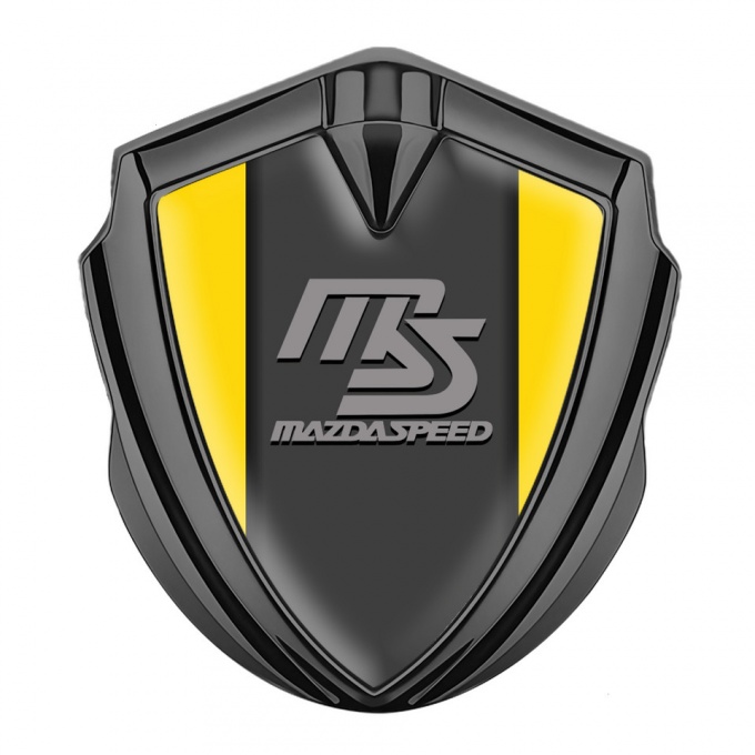 Mazda Speed Metal Emblem Badge Graphite Yellow Frame Sport Grey Logo