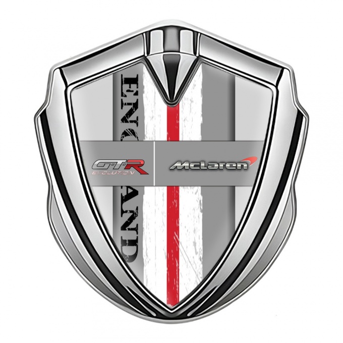 McLaren GTR Silicon Emblem Badge Silver Grey Frame England Motif