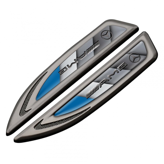 Mercedes AMG Fender Bodyside Emblem Graphite Blue Plate Metallic Logo