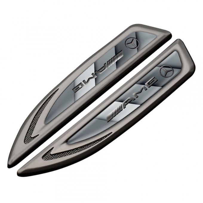 Mercedes AMG Fender Metal Emblem Graphite Grey Panels Metallic Logo