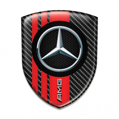 Mercedes AMG Silicone Badge Black Fibers with Red Bands Style