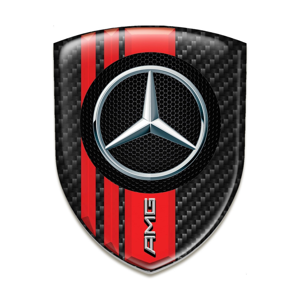 Mercedes AMG Silicone Car Decal Badge Dark Carbon Red Bands Style