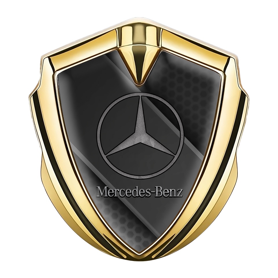 Mercedes Benz Bodyside Badge Self Adhesive Gold Hex Diagonal Plate