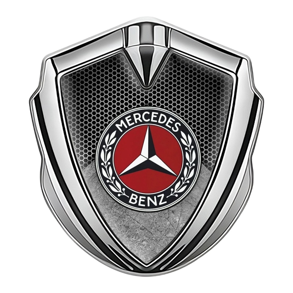 Mercedes Benz Bodyside Domed Emblem Silver Dark Hexagon Red Ring Logo