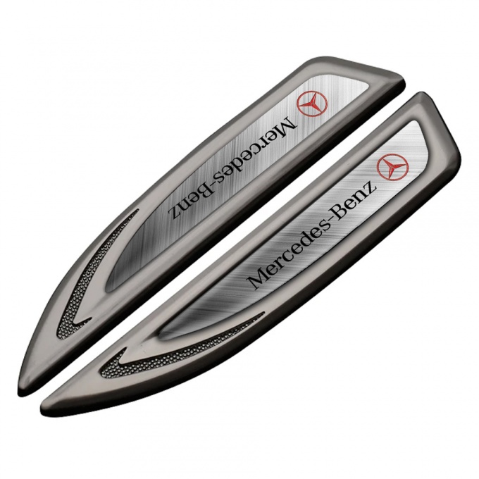 Mercedes Fender Bodyside Badge Graphite Brushed Aluminum Red Logo