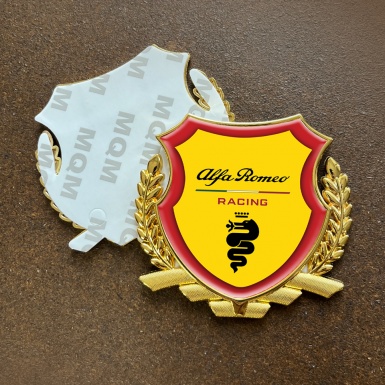 Alfa Romeo Racing Metal Emblem Self Adhesive Yellow Red Rim Gold Edition