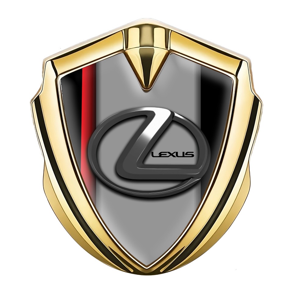Lexus Emblem Badge Self Adhesive Gold Red Stripe Grey Dark Steel Logo