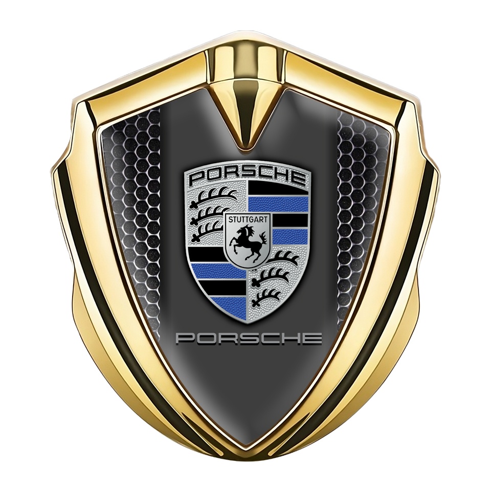 Porsche Bodyside Domed Emblem Gold Onyx Mesh Blue Segment Version