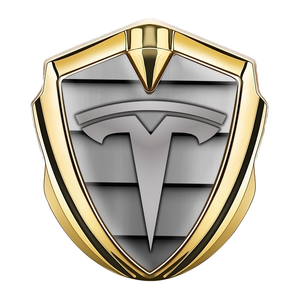 Tesla Trunk Metal Emblem Badge Gold Grey Shutter Logo Design