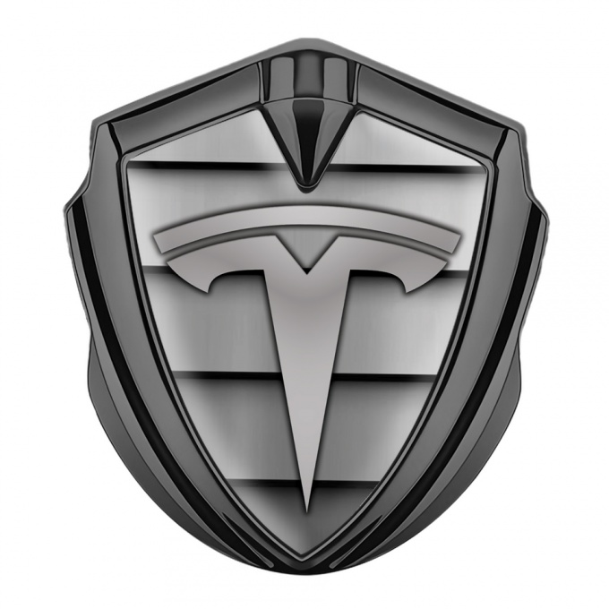 Tesla Trunk Metal Emblem Badge Graphite Grey Shutter Logo Design