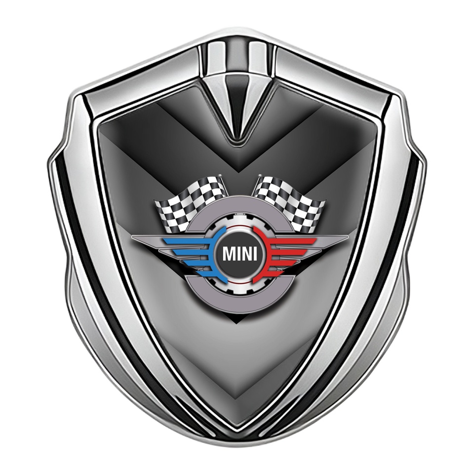 Mini Cooper 3D Car Metal Emblem Silver V Shapes Gears Logo Design