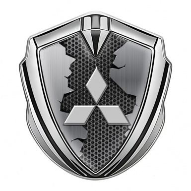 Mitsubishi Emblem Car Badge Silver Dark Hex Broken Steel Classic Logo