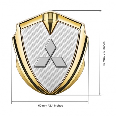 Mitsubishi Emblem Fender Badge Gold White Carbon Classic Design