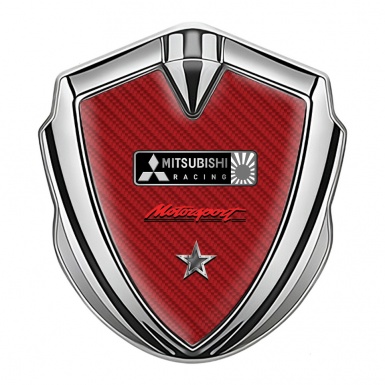 Mitsubishi Emblem Fender Badge Silver Red Carbon Monochrome Logo