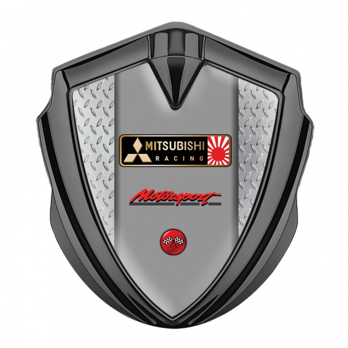 Mitsubishi Metal Emblem Self Adhesive Graphite Treadplate Racing Flags