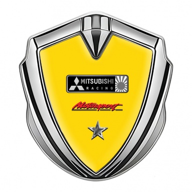 Mitsubishi Metal Emblem Self Adhesive Silver Yellow Base Star Design