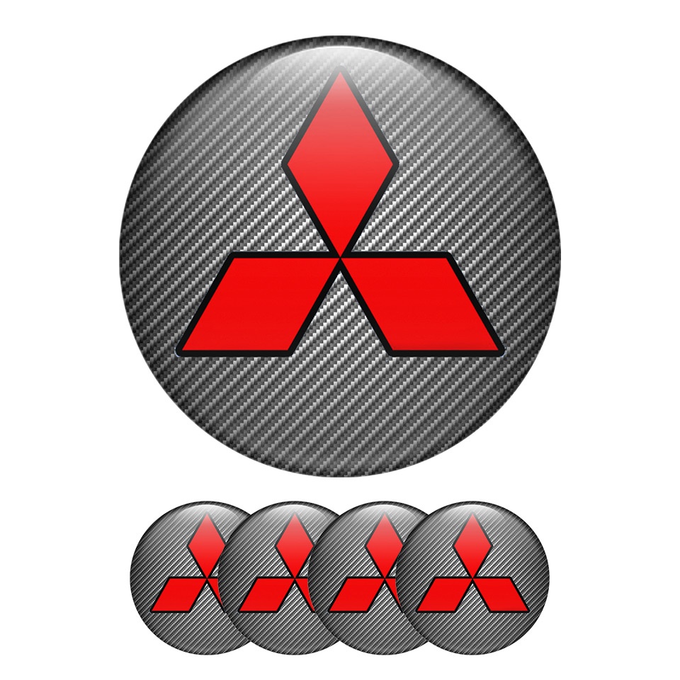 Mitsubishi Wheel Center Cap Domed Stickers Red Line Carbon Edition