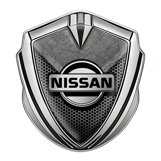 Nissan Bodyside Domed Emblem Silver Hexagon Texture Stone Fragment