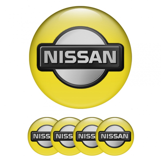 Nissan Center Wheel Caps Stickers Yellow Color Polished Circle Logo