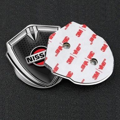Nissan Emblem Car Badge Silver Dark Mesh Grey Red Logo Design