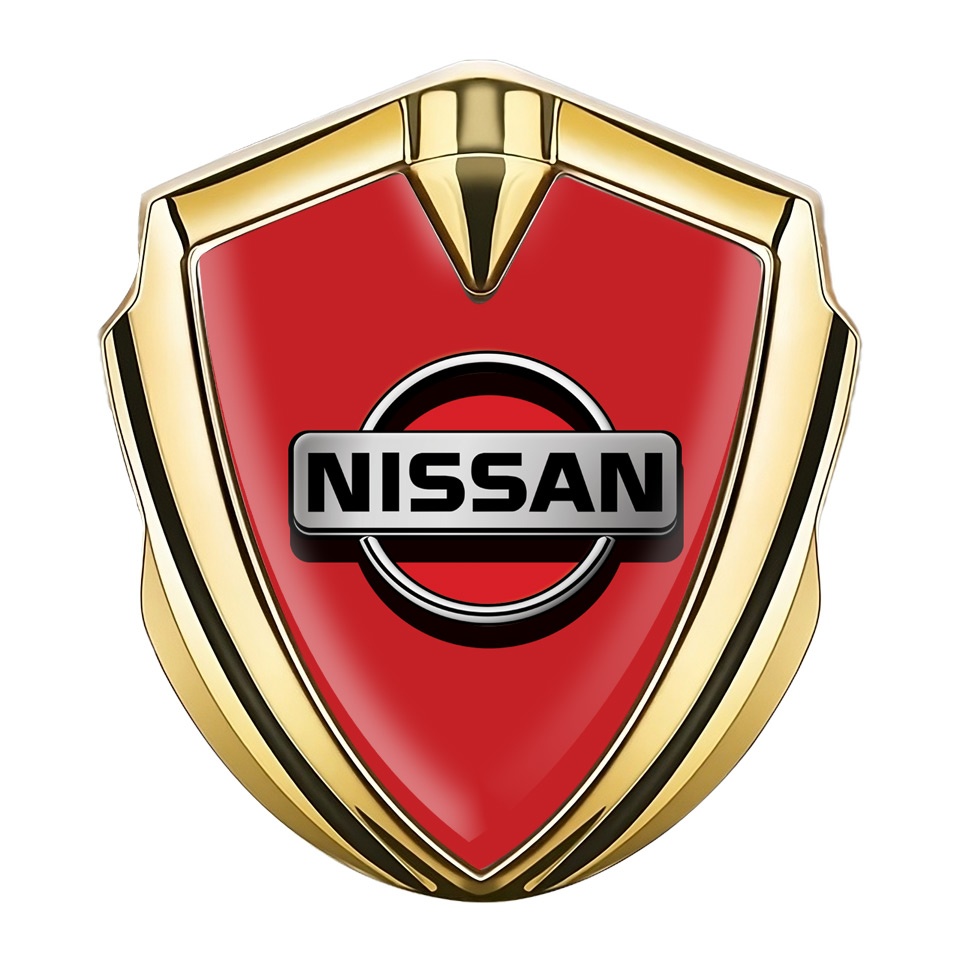 Nissan Metal 3D Domed Emblem Gold Red Base Classic Grey Logo