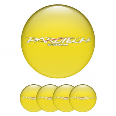 Parotech Stickers for Wheels Center Caps Yellow Base White Logo Red Line