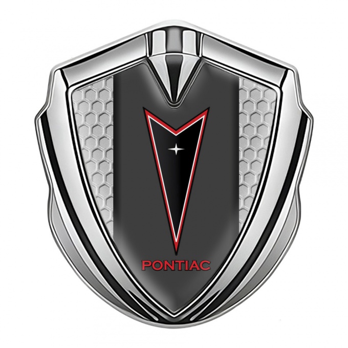 Pontiac Emblem Fender Badge Silver Grey Honeycomb Red Outline Logo