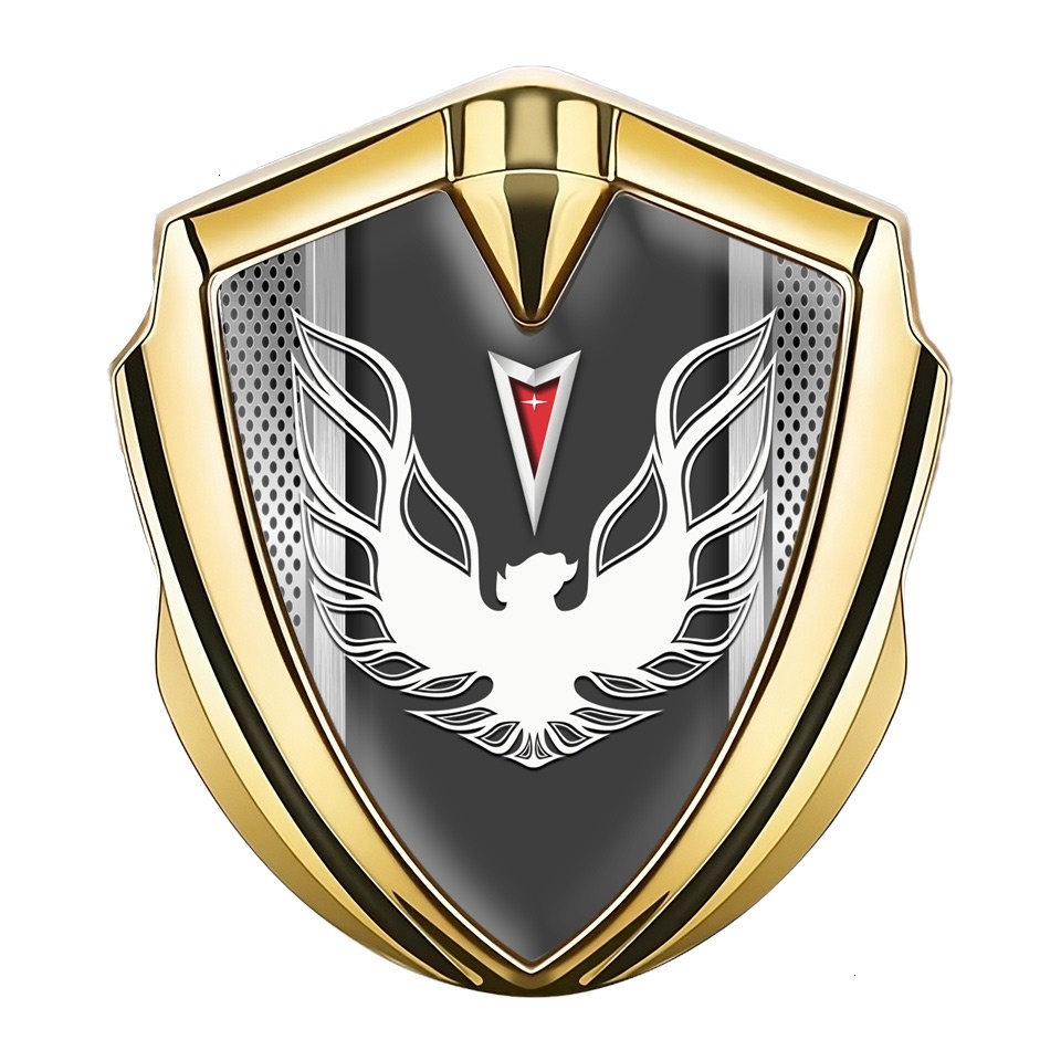 Pontiac Firebird Emblem Ornament Badge Gold Steel Frame White Red Logo