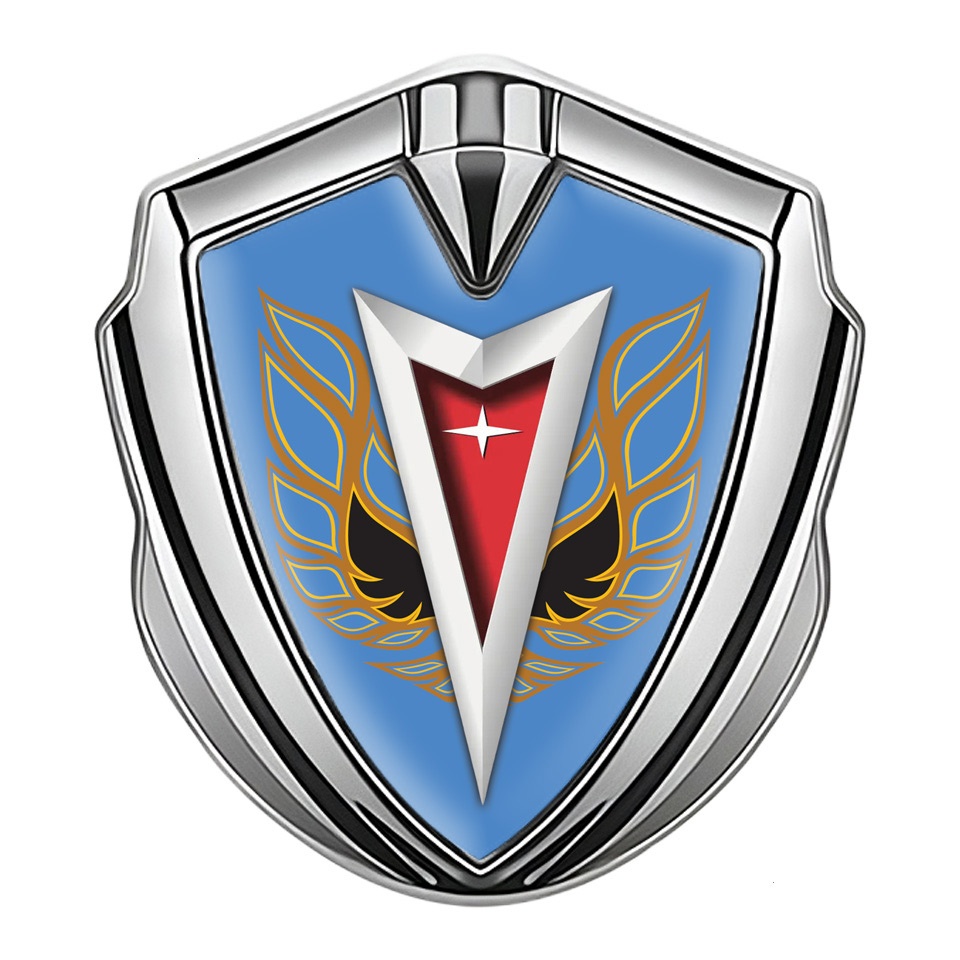 Pontiac Metal Domed Emblem Silver Blue Base Copper Firebird Wings