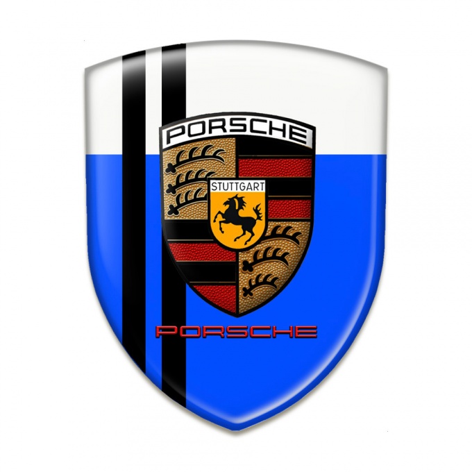 /Porsche 3D Gel Emblem Blue White Print with Black Lines