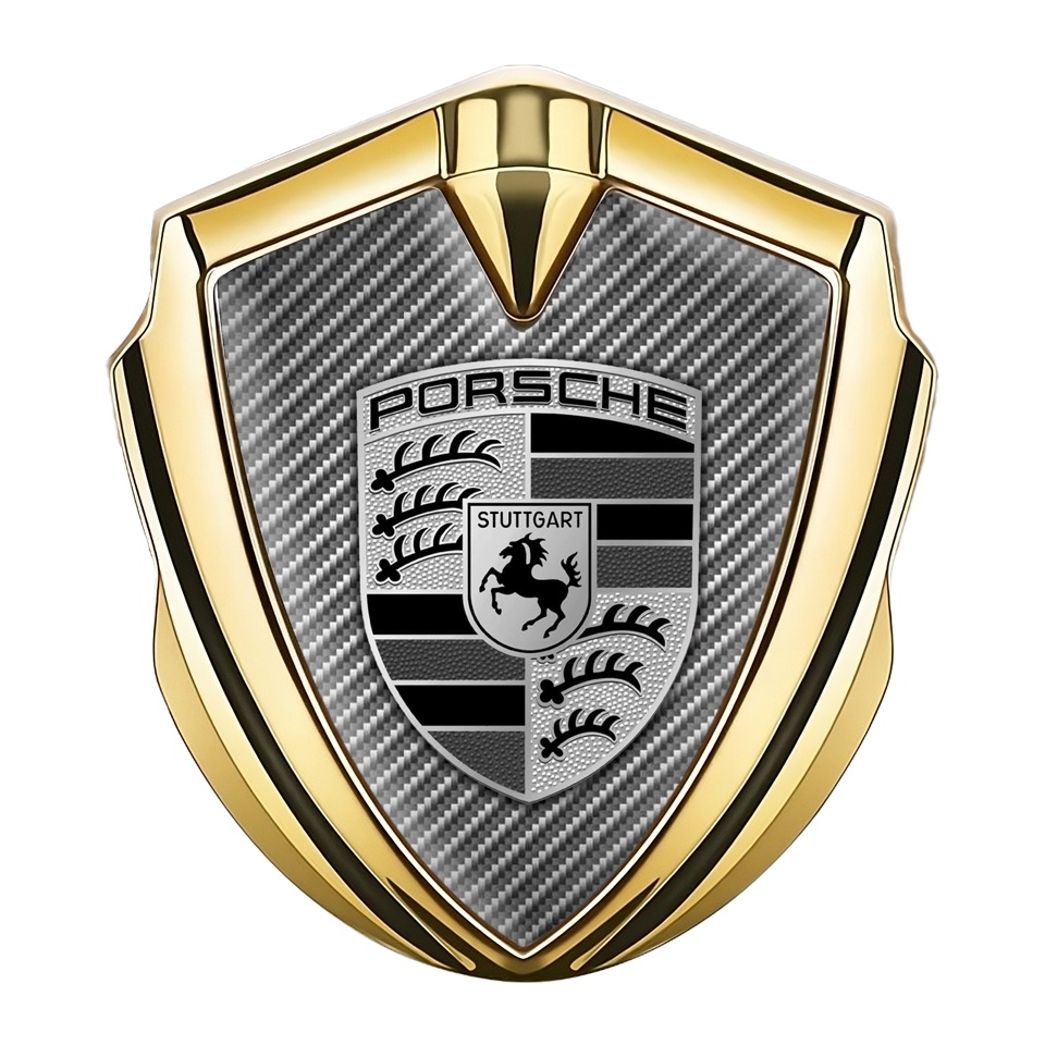 Porsche Bodyside Domed Emblem Gold Light Carbon Greyscale Logo Design