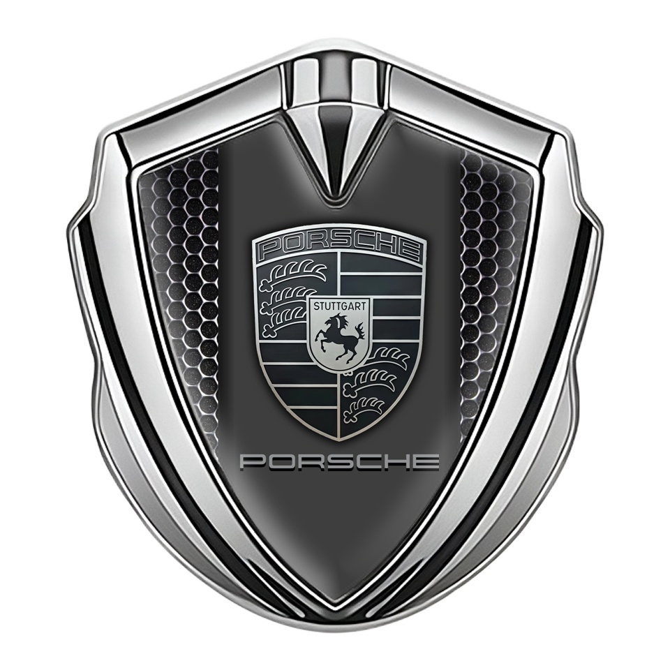 Porsche Bodyside Domed Emblem Silver Dark Grille Motif Monochrome Logo
