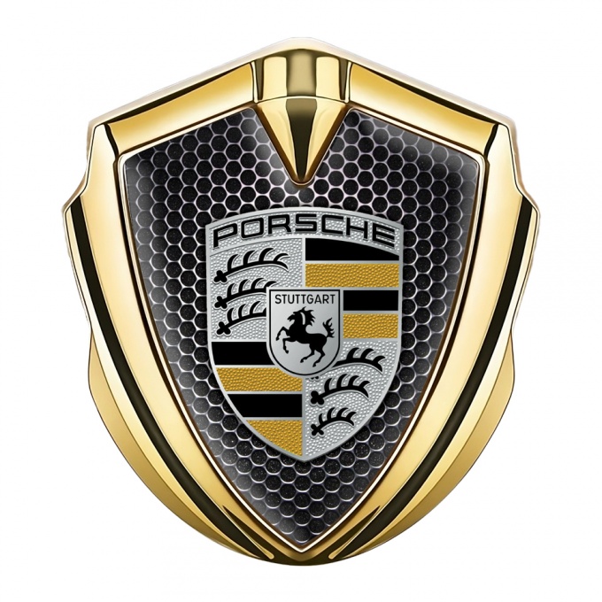 Porsche Fender Metal Domed Emblem Gold Dark Grate Color Elements