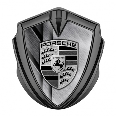 Porsche Fender Metal Domed Emblem Graphite Layered Steel Base Grey Motif