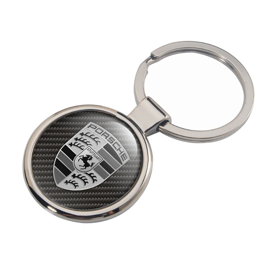 Porsche Keychain Stainless Still Carbon Logo Style