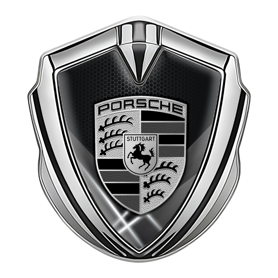 Porsche Metal Emblem Self Adhesive Silver Grey Hex Glowing White Pillars