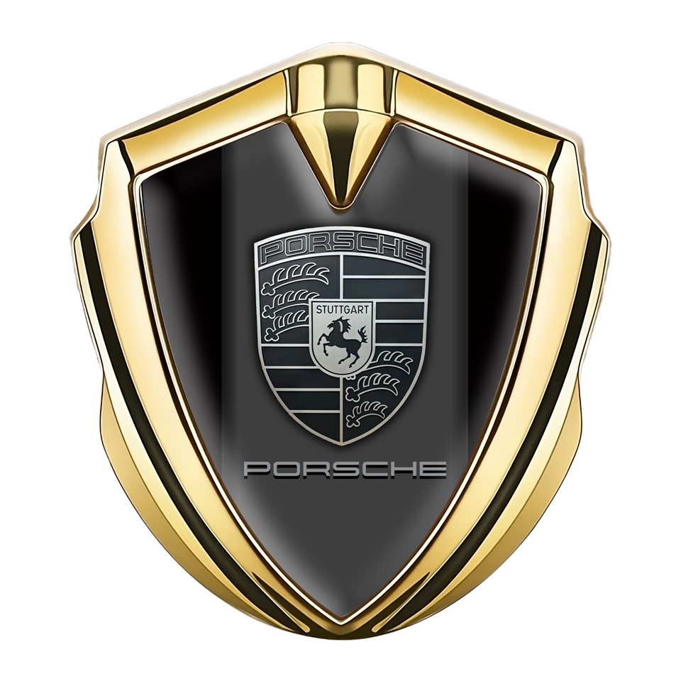 Porsche Self Adhesive Bodyside Emblem Gold Black Base Monochrome Crest