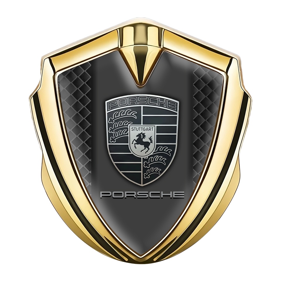 Porsche Self Adhesive Bodyside Emblem Gold Black Net Motif Greyscale Logo