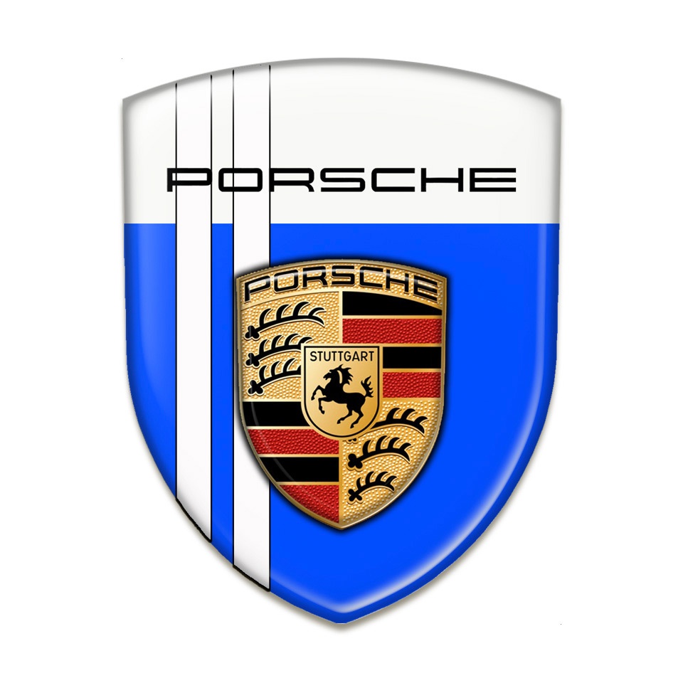 Porsche Silicone Emblem Blue Base White Lines Design and Classic Logo