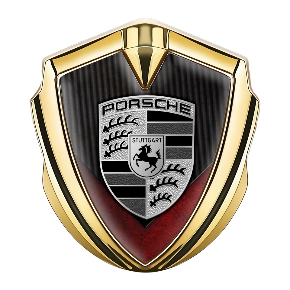 Porsche Tuning Emblem Self Adhesive Gold Grey Strokes Red Fragments